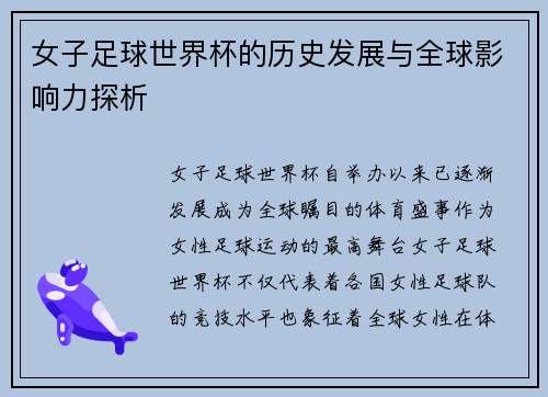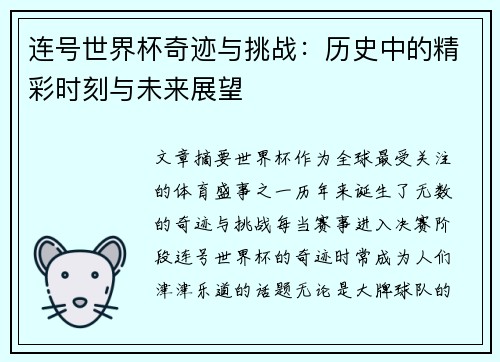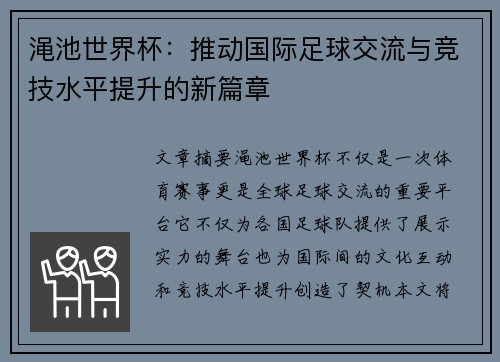 本文将围绕“松山世界杯:揭开世界足球盛宴的新篇章与未来发展趋势”这一主题进行深入探讨,文章将从多个角度分析松山世界杯的历史意义、举办带来的全球影响力以及其对足球未来发展的深远影响。首先,我们将概述松山世界杯的背景及其在足球世界中的独特地位;其次,探讨松山世界杯的举办对全球足球生态、文化交流、经济发展和体育科技的推动作用;然后引用著名学术机构的研究数据,分析这一赛事如何通过数据和技术的结合推动足球运...
