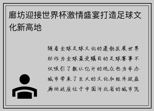 文章摘要:《贝瓦儿歌世界杯盛典:与孩子们一起欢乐畅游足球的世界》通过富有趣味性和互动性的方式,带领孩子们进入一个充满活力和热情的足球世界。这不仅是一次文化和体育的结合,更是通过音乐、游戏和教育的方式,让孩子们在欢声笑语中感受世界杯的魅力。文章将从四个方面详细阐述这一盛典的独特意义:首先是通过音乐与儿歌引导儿童了解足球,其次是活动中如何通过互动游戏培养孩子的团队合作精神,再者是世界杯文化如何影响孩子...